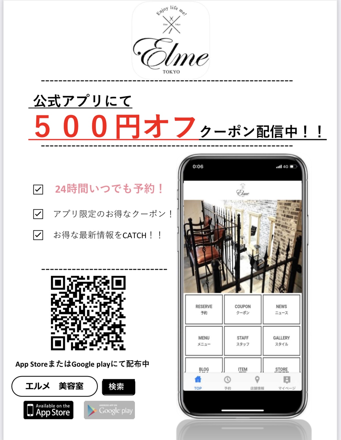 アプリからご予約いただくと、どなた様でもご利用いただけるアプリ限定クーポンがございますので、ぜひダウンロードをお願い致します!